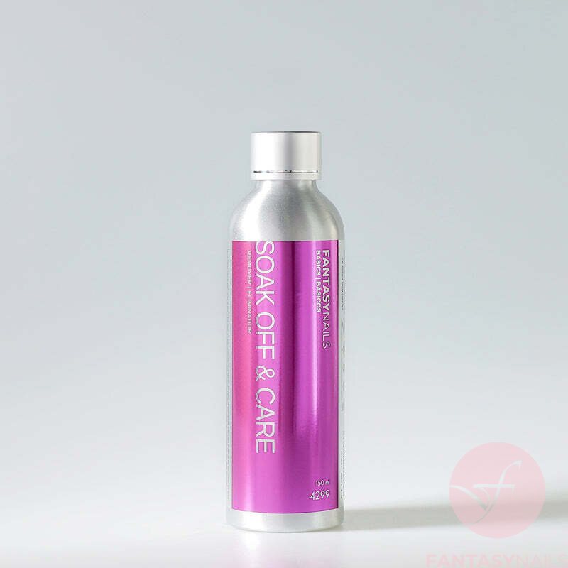 SOAK OFF & CARE nesteellä poistat geelilakkaukset sekä akryylin tehokkaasti mutta ihoa hellien. SOAK OFF & CARE on vegaaninen.